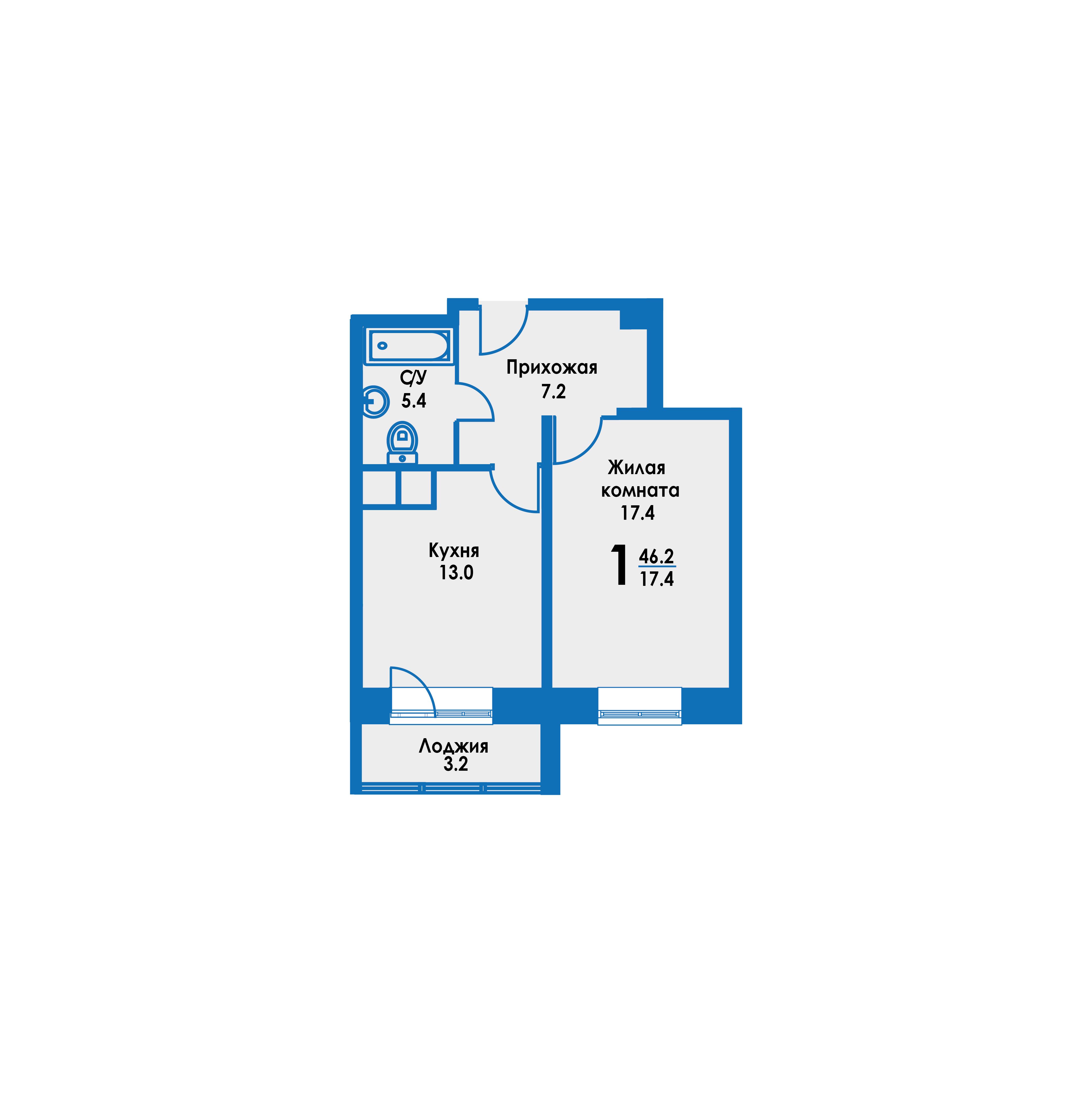 Продам однокомнатную квартиру в новостройке 43.4 м.кв.