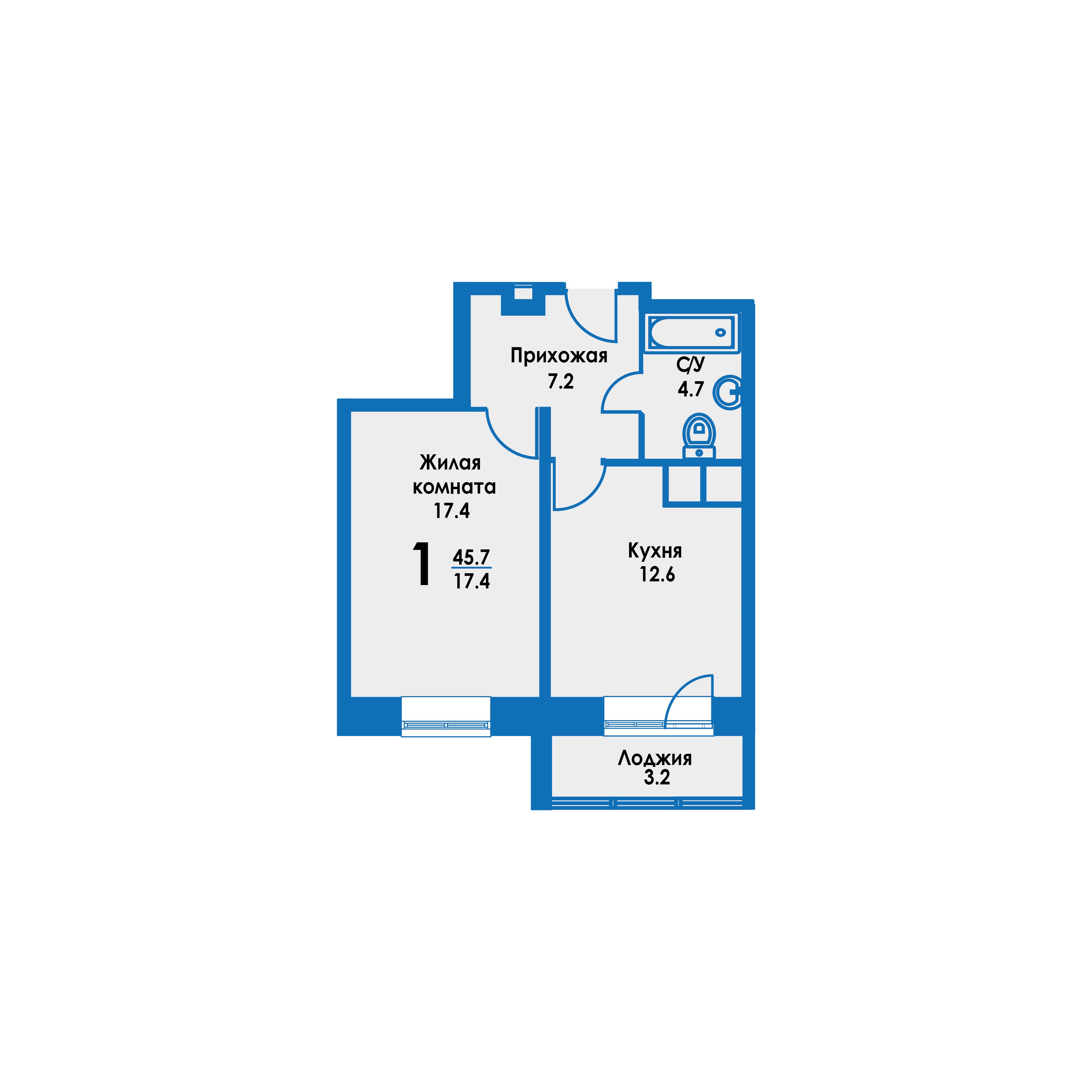 Продам однокомнатную квартиру в новостройке 43.3 м.кв.