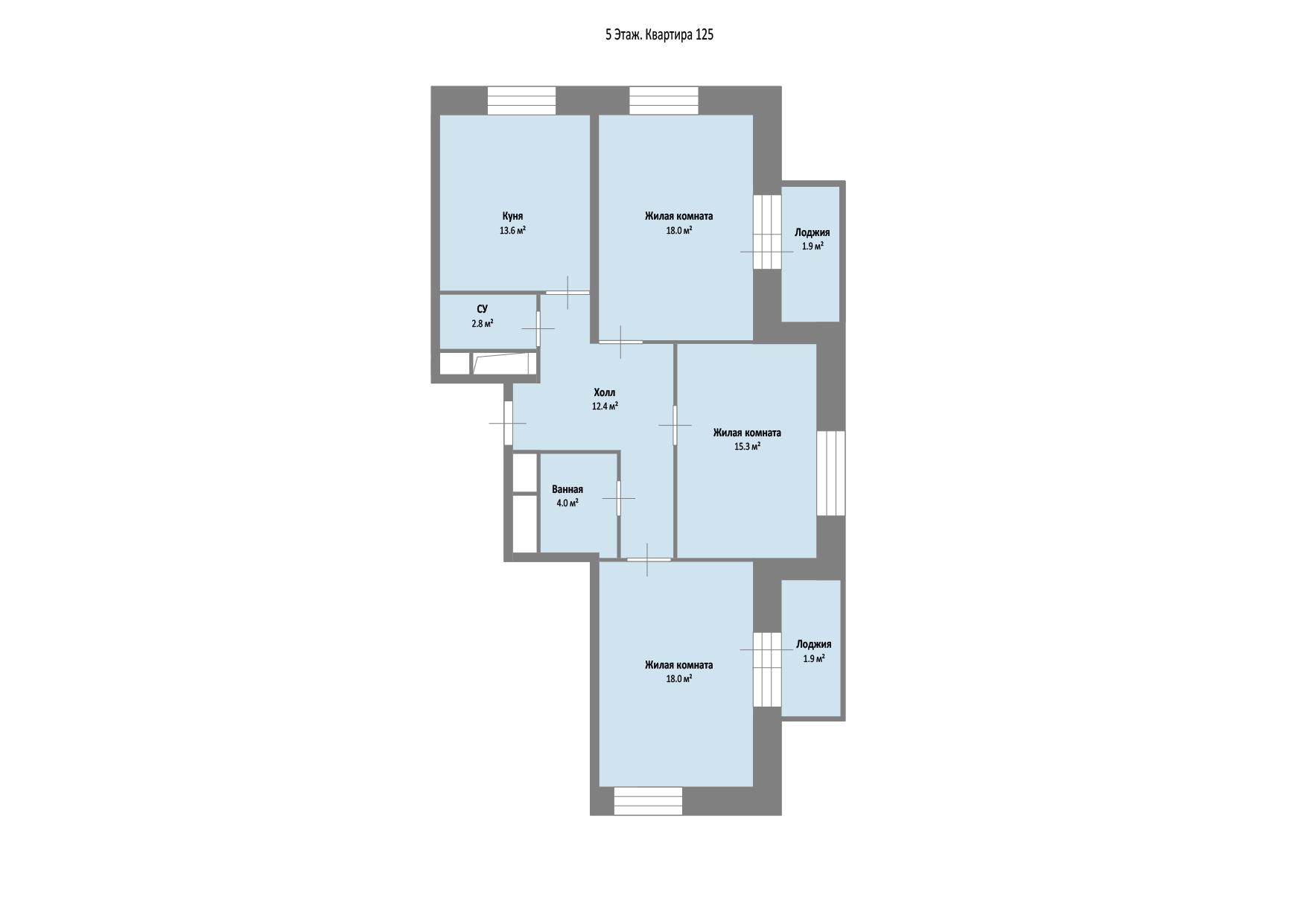 Квартира расположена на пятом этаже пятиэтажного дома и имеет жилую площадь 51.3 квадратных метров и кухню площадью 13.6 квадратных метров. Благодаря двум балконам открывается приятный вид как на тихий двор, так и на улицу.
